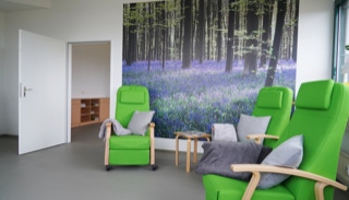 Gemütliche und funktionale Sessel laden zum Ausruhen ein. Warmes Licht, ebenerdige und barrierefreie Räumlichkeiten sorgen dafür, dass jeder Gast sich problemlos und angenehm in der Tagespflege bewegen kann.
