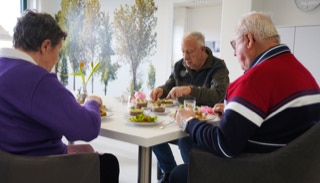 Nach Bastelspielen oder Gymnastik am Vormittag gibt es pünktlich um 12 Uhr Mittagessen. Hier wird auch sehr auf die Wünsche der Tagesgäste Rücksicht genommen.