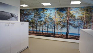 durch Großplakate in die Tagespflege. So haben unsere Gäste immer einen Blick „ins Grüne“.
