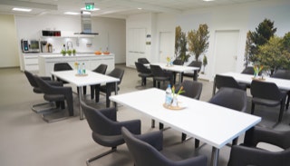In der modernen Küche wird Frühstück, Mittagessen und Kaffee & Kuchen zubereitet. Die abwechslungsreichen Speisen werden nicht angeliefert, sondern vom hauseigenen Koch frisch vor Ort gekocht - eine Besonderheit, auf die wir sehr stolz sind!